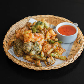 Deep-fried Mixed vegetables dipped into tempura batter served with sweet sauce.